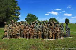 Pomník Lidických dětí vytvořený sochařkou Marií Uchytilovou a jejím manželem Jiřím Hamplem. Zdroj: Paměť národa / archiv pamětníka Jiřího Hampla, se souhlasem Paměť národa