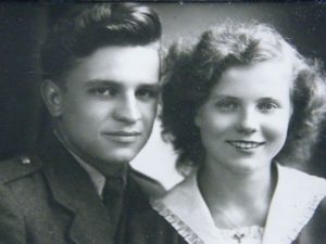Svatební foto novomanželů Hanfových. Zdroj: Paměť národa / archiv pamětníka Václava Hanfa, se souhlasem Paměť národa