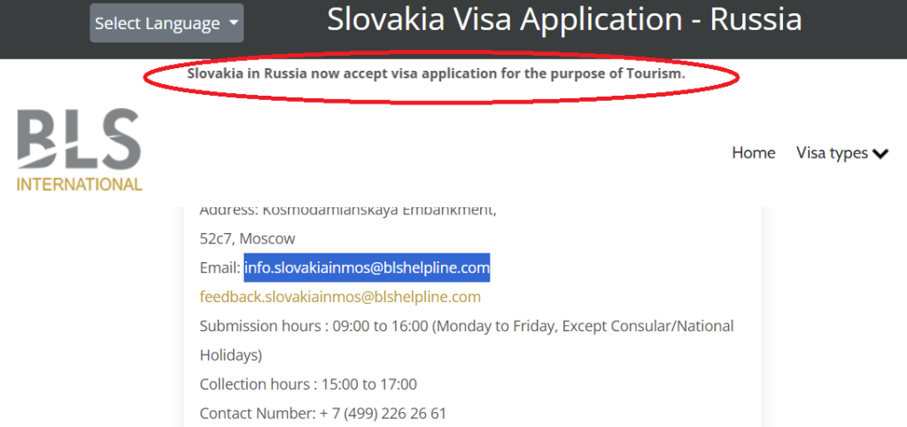 To, že Slovensko opět udělení víz umožňuje, však potvrzuje web vízového operátora BLS International, který žádosti zpracovává: „Slovensko v Rusku nyní přijímá žádosti o víza pro účely turistiky.“
