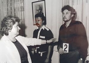 Vrah při rekognici, procesu ztotožnění osoby svědkem, z vyšetřovacího spisu. Zdroj: Paměť národa, se souhlasem Paměť národa
