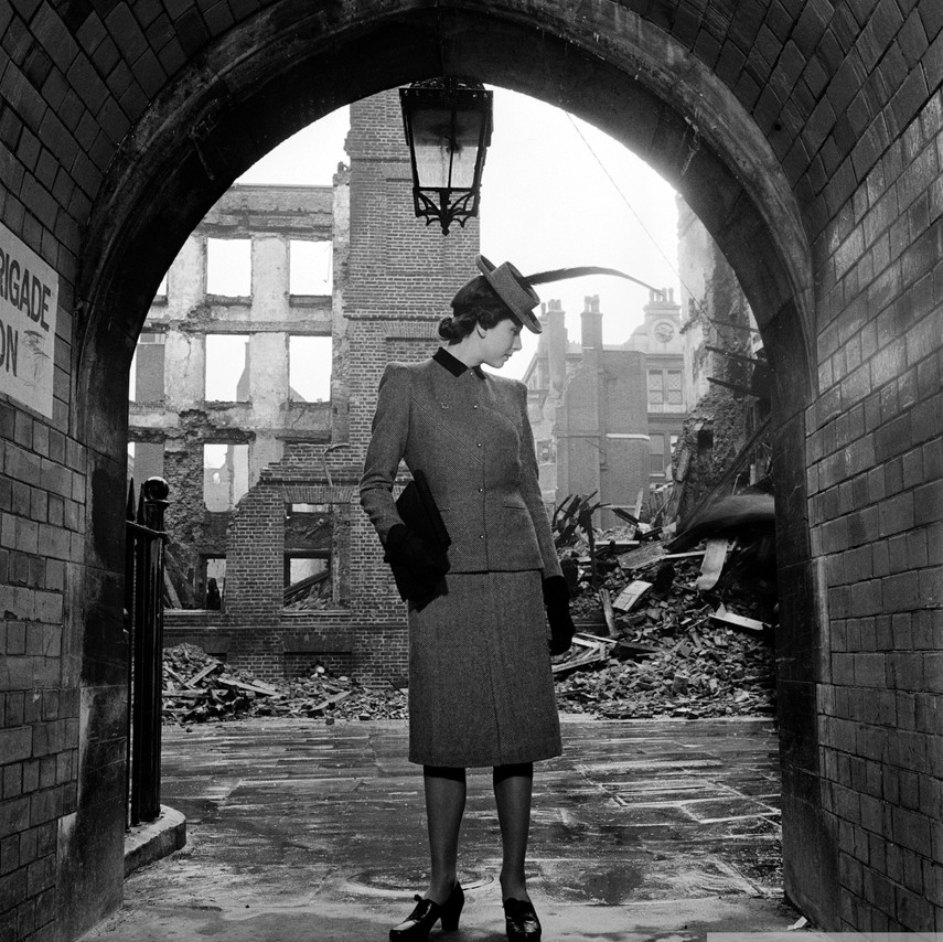 Lee Miller, Model Elizabeth Cowell wearing Digby Morton suit, London 1941. Foto: se svolením Lee Miller Archives