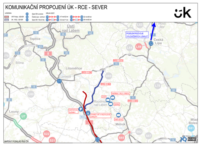 Ústecký kraj vyhlásil veřejnou zakázku na studii nového silničního propojení mezi dálnicí D8 u Roudnice a silnicí I/15 u Liběšic. V této fázi jde o dodání tzv. vyhledávací studie, která by měla být dodána v roce 2026.