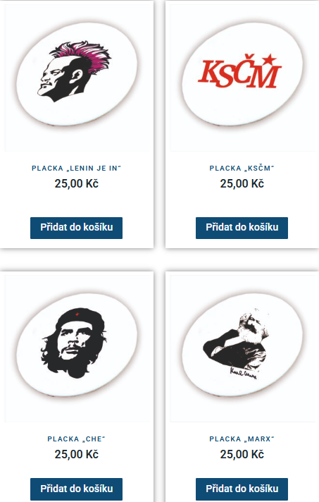 Printscreeny z e-shopu KSČM z počátku prosince 2025