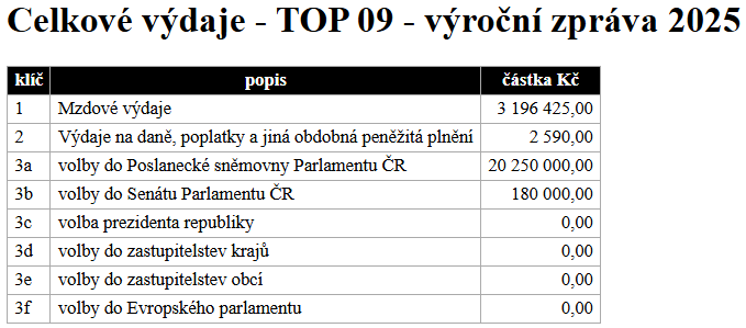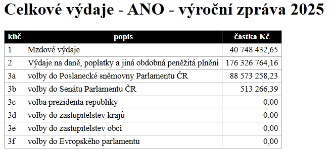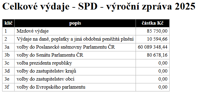 Za povšimnutí stojí zejména položka přiznaných výdajů na loňské volby do Poslanecké sněmovny. Nejvíce z politických stran utratila za kampaň ODS (89,95 milionu korun), těsně před ANO (88,57 milionu), Svobodní a Trikolora deklarovaly nulu.