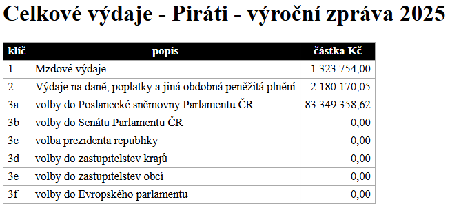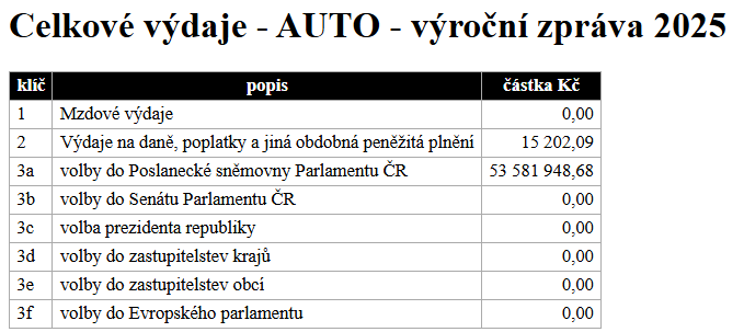 V poměru k obdrženým hlasům je hodně vysoký údaj u Motoristů: 53,58 milionu korun. Zaujme i suma 83,35 milionu u Pirátů.