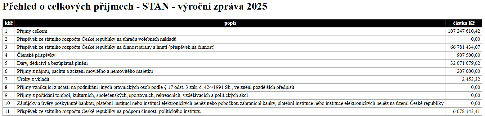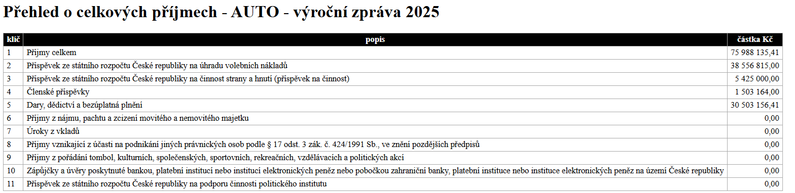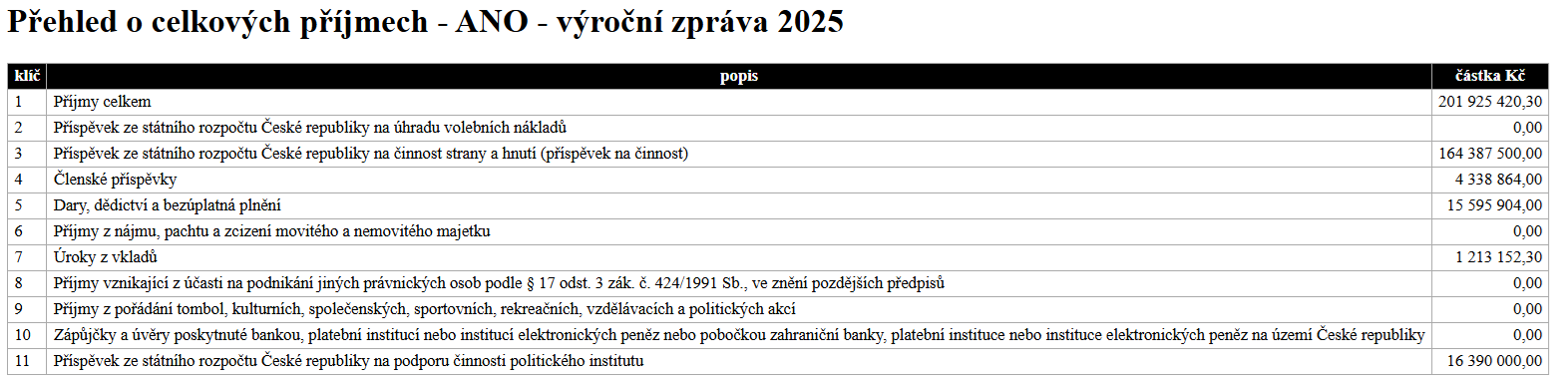 Politické strany musejí povinně, vždy nejpozději do 1. dubna, odevzdat výroční zprávy o svém hospodaření. Od těch malých vykazujících dlouhodobě jen drobné z členských příspěvků, po tu největší, jíž je Babišovo ANO s loňským příjmem téměř 202 milionů a výdaji 176 milionů korun.
