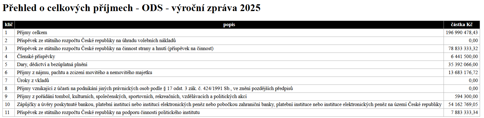 Zajímavá je položka týkající se bankovních půjček. Tam dominuje ODS s 54,2 milionu korun. SPD si vloni půjčilo 20 milionů.