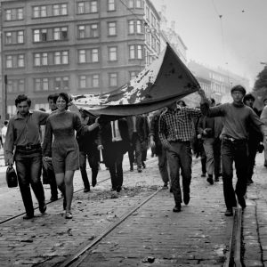 Jednadvacátého srpna 1968 obsadily Prahu sovětské tanky a Hana vyrazila s fotoaparátem do ulic. „Měla jsem kliku, potkala jsem nějakého kluka, který jezdil na motorce. Jezdila jsem s ním a během prvního dne jsme se dostali na hodně míst v Praze.“