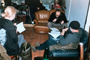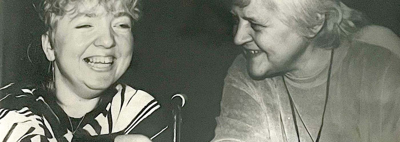 Bohdana Pavlíková a Jan Hájek na snímku z natáčení audiohry Mrzákovi všechno projde. Zdroj: archiv Amálie Elbel, se souhlasem Paměť národa
