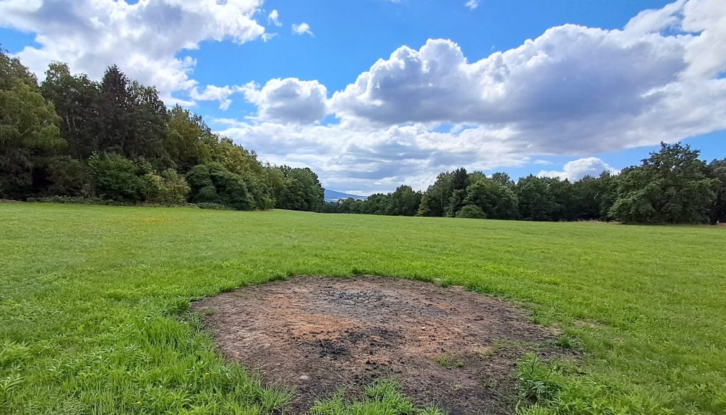 Co se tedy v červnu na louce u Višňové vlastně dělo? Najít místo akce není ani po více než dvou měsících nic těžkého. Na louce pod skalním útvarem příhodně nazvaným Pohanské kameny, kterou od okolního světa z několika stran odděluje pás lesa nebo horizonty nedalekých kopců, je stále jasně patrný asi dvoumetrový kruh vypálený do zelené trávy.