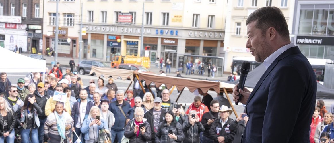 Od koncertů pro Ukrajinu k jarmarkům SPD. Kdo vyrábí Okamurovi volební show