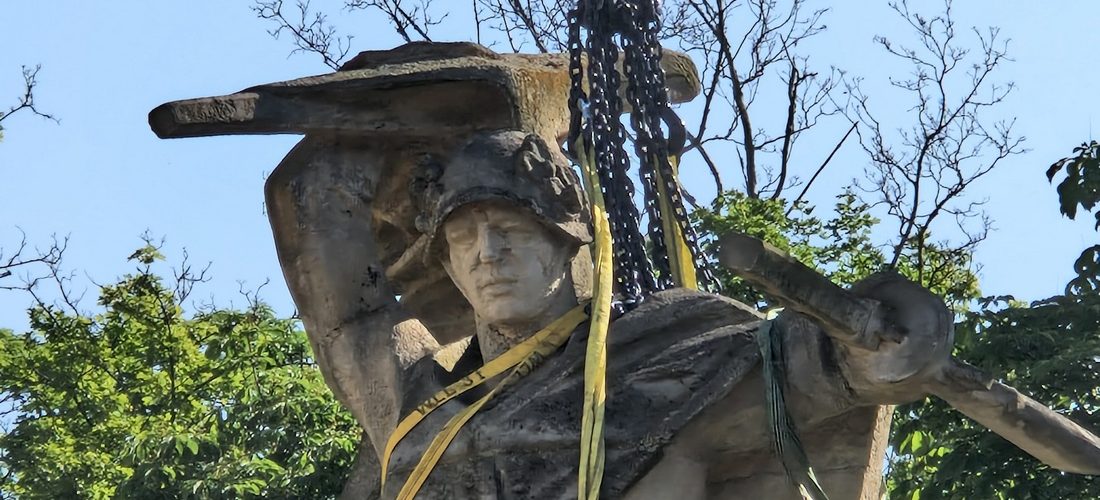 REPORTÁŽ. V Litoměřicích odstraňovali sochu sovětského vojáka z tamních Jiráskových sadů. Stál zde coby hraniční kámen ruského impéria o pár dní déle než 50 let a v sobotu se vydal na korbě náklaďáku na svou cestu poslední, do deponie ve zdejších bývalých kasárnách. Přesun byl výsledkem skoro tříletých snah zdejší občanské společnosti, které se podařilo přesvědčit i politiky, i když to občas nebylo úplně jednoduché. Co dalšího litoměřická akce ukázala?