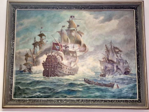 Obraz lodí. Momentálně se nachází na Pankráci v kanceláři kaplanů. Zdroj: Otto Broch, hlavní kaplan VS ČR, se souhlasem Paměť národa