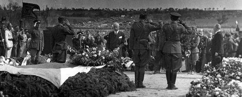 Baťovi mladí muži kopají zákopy, uprostřed třídní učitelka a němčinářka Frantíková. Foto: archiv pamětníka, se souhlasem Paměť národa