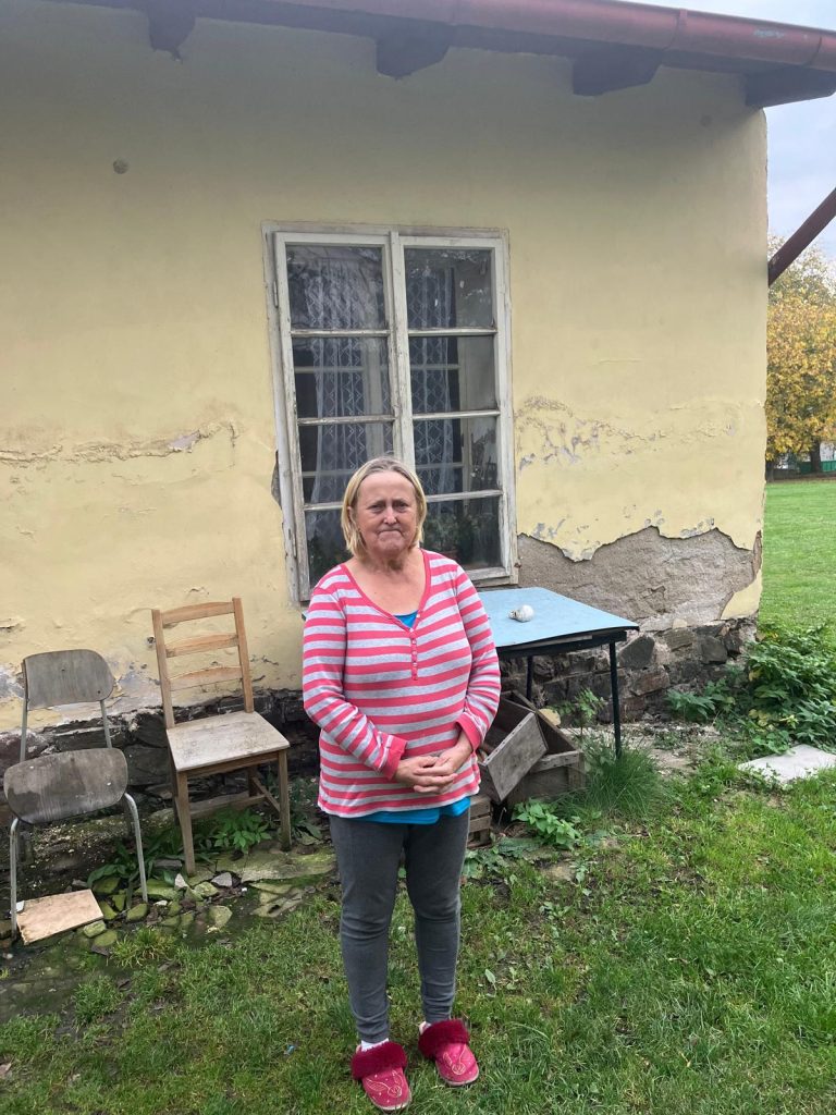 Antonie Turecká před svým bydlištěm. Foto: Robert Břešťan / HlídacíPes.org