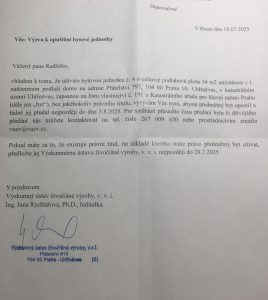 Zvláštní je i fakt, že nikdo z nájemníků od VÚŽV stále ještě nedostal ani vyúčtování služeb za rok 2024, byť ze zákona už termín dávno vypršel a ústavu kvůli tomu běží penále – každý jeden den 50 Kč. Suma penále za zhruba 90 bytů už se pohybuje kolem 800 tisíc korun.
