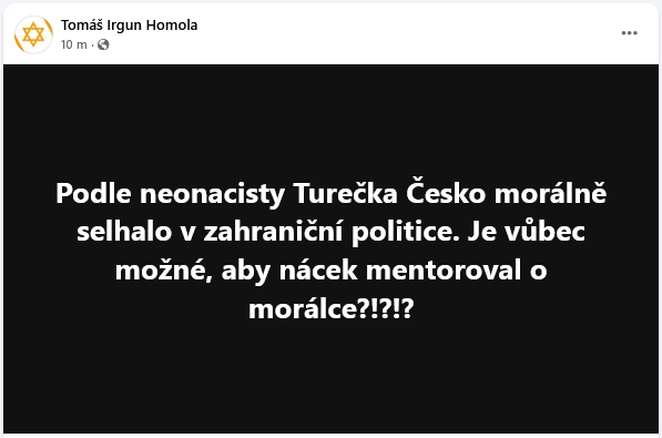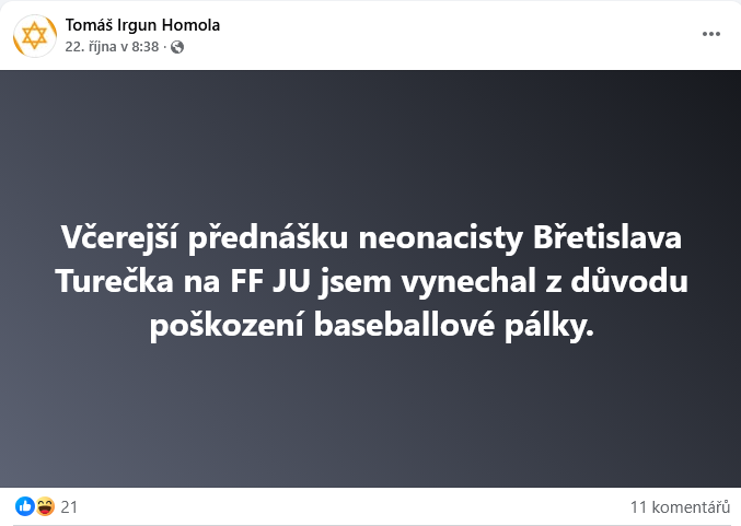 Nejenže zopakoval označení „neonacista“ směrem k Turečkovi, ale svou pozornost zaměřil i na autora textu na HlídacíPes.org, který na případ upozornil.