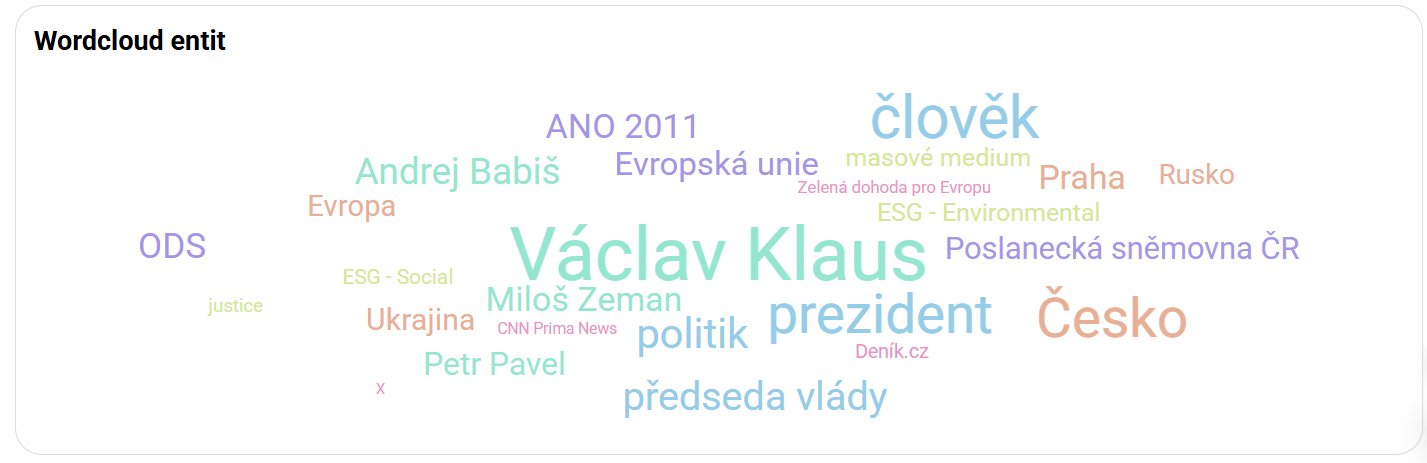 - Wordcloud u textů se jménem Václav Klaus. Zdroj: Newton Media