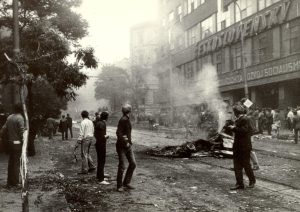 Po bojích u rozhlasu 21. srpna 1968. Autorem fotografie je pamětník Jiří Haleš Zdroj: archiv Jiřího Haleše a Paměť národa, se souhlasem Paměť národa