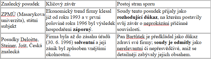 I když tedy chybný postup úřadů soudy uznaly, odmítly jej jakkoli spojit s kolapsem Bartůškova byznysu. Opíraly se v tom o jediný znalecký posudek, který si soud ve sporu se státem zadal u státního znaleckého ústavu ZPMÚ u Masarykovy univerzity.