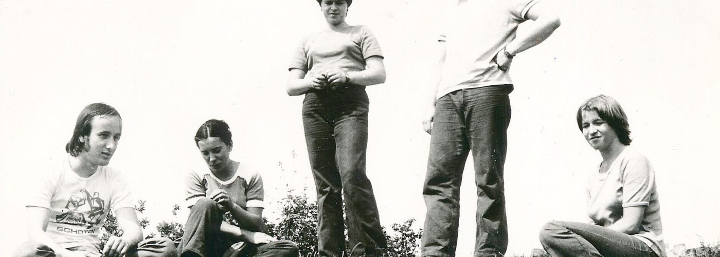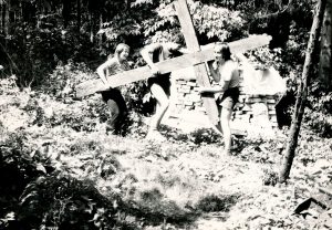Jan Rabiňák se svými svěřenci při nesení kříže, srpen 1980. Zdroj: archiv pamětníka, se souhlasem Paměť národa