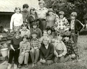 Jan Rabiňák (chlapec vpředu) na skautském táboře na Moldavě, 1970. Zdroj: archiv pamětníka, se souhlasem Paměť národa