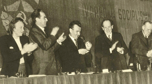 Marie Švermová (zcela vlevo) na tribuně ÚV KSČ roku 1948. Zdroj: Wikimedia Commons, se souhlasem Paměť národa