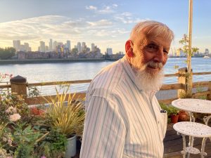 Malíř Peter Kent žije v Greenwichi už šedesát let. Za tu dobu se panorama řeky významně proměnilo. V oblasti bývalých přístavů a doků vyrostla nejmodernější zástavba města. Foto: Tereza Engelová / HlídacíPes.org